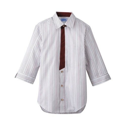 ネクタイ風のデザインがポイントです。襟汚れが目立ちにくい裏襟カラー。水仕事など、腕まくりの手間なく作業ができる七分袖。