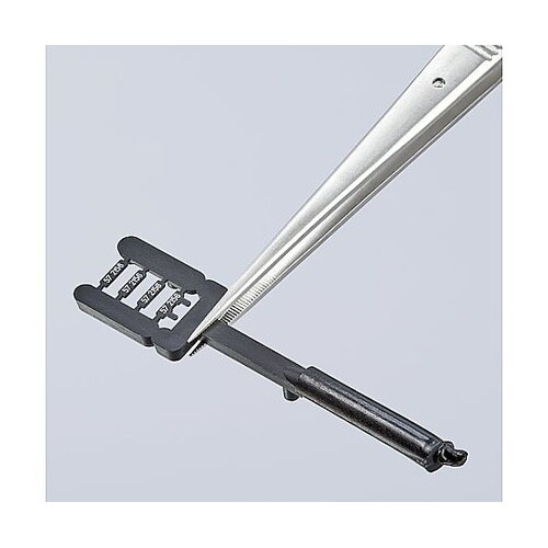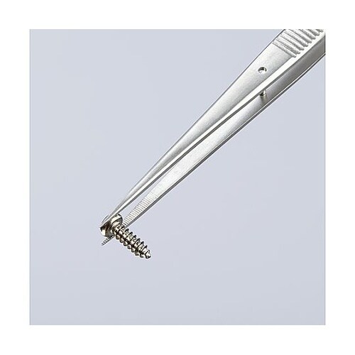 本体と先端に細かく歯形が付いており、高いグリップ力があります。非磁性、耐酸性です。先端0.5mm幅の先細タイプです。磁気を起こしたくない精密作業用。 |