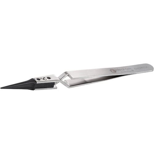 先端交換可能(先端品番:ID−5CPT)スイスのピンセットメーカー、IDEAL−TEK社製のプラスチック製先端交換式ピンセット5XCPRは平らな部品をしっかりと保持する必要がある用途に適しています。 |