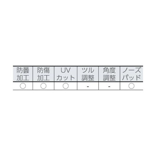 レンズは衝撃に強いポリカーボネートを使用しています。紫外線を99.9%カットします。視野が広いワンプレートレンズです。フレームレスで視野が広いです。 |