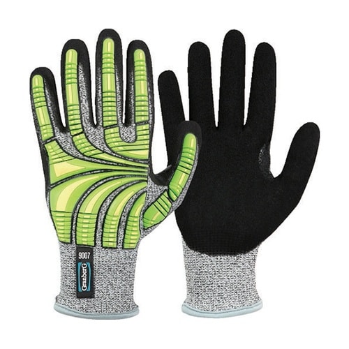 耐油性の高いモデルで、手のひらにはニトリルコーティングが施してあり、高いグリップ力を発揮します。手の甲には特殊なラバーコーティングが施してあり、手を挟んだ際に衝撃を吸収します。 |