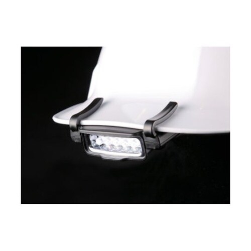 ヘルメットや布帽子に取付け可能です。高輝度LED5個使用しております。角度が自由に調節できます。(調節範囲90度以内)屋根裏工事や機械のメンテナンスなど両手が必要な作業に。 |