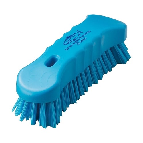 サーモンレジンブラシは、タフト(房)をステンレステープルで止めるだけでなく、その後に、流動状のエポキシレジンをブラシ面の凹みの中に入れて固定するセット構造です。 |