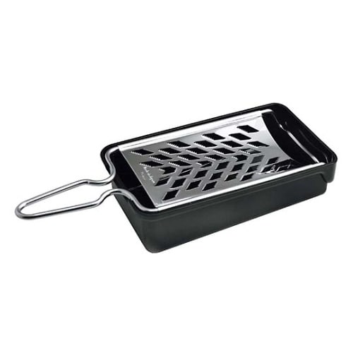 おろし板の曲面とVラインの刃が、おろすスピードを大幅にアップ。力を入れずに刃先でおろすと、きめ細かな柔らかい仕上がりに。刃に深くあてる様におろすとシャキシャキした食感の仕上がりになります。 |