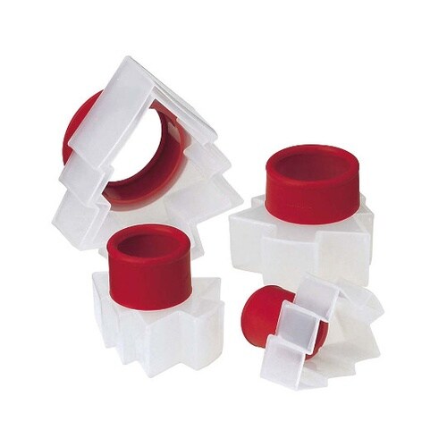 大きさの違う5つの型がセットになったクッキー用カッターです。継ぎ目がない為、クッキーやカナッペ等をきれいにカット出来ます。ピタッといっしょに重ねて、コンパクトに収納でき便利です。