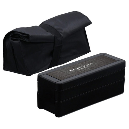 上下本体、上下中皿、中仕切・ポリプロピレン・箸・AS樹脂・フタ、とめ具・ABS樹脂・パッキン部・熱可塑性エラストマー<ランチバッグ/ポリエステル・発泡ポリエチレン+アルミ蒸着シート><ランチベルト/ポリエステル・天然ゴム>