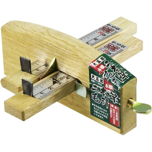 筋付け(線引き・罫引き)用刃を左右に分けると2つのサイズの筋付けが交互にできます。読みやすいシルバー目盛り付き。 |
