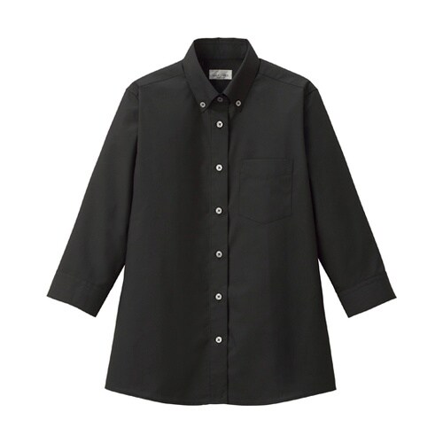 ボンマックス レディスボタンダウン七分袖ブラウス ブラック 15G FB4045L−16 15G FB4045L−16 15G 1枚 A059-4146