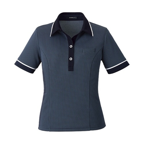 伸縮性抜群のニット素材に天然由来の再生繊維キュプラの機能性をプラスして最高の着心地を実現した春夏トップス。細かいジオメトリック柄がモダンなシリーズです。