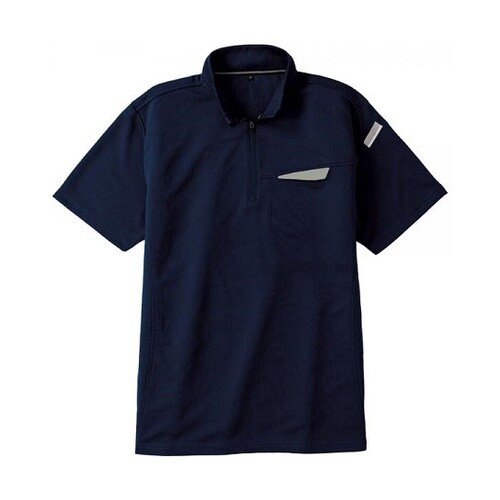 切りポケハーフジップ半袖ポロ ネービー