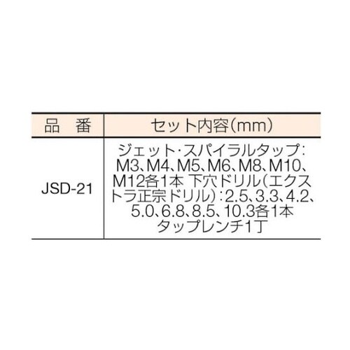 一般鋼向けのジェットタップ、スパイラルタップと下穴ドリルのセットです。被削材:一般鋼。 |