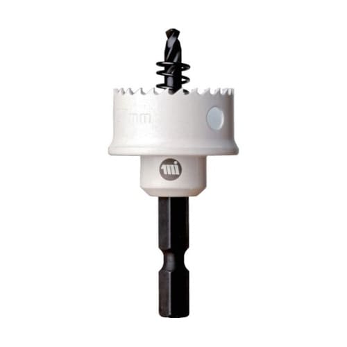 極薄バイメタル刃(刃厚0.6mm)を使用しています。切削抵抗を抑え、充電ドリル、インパクトドリルでの穴あけに適しています。