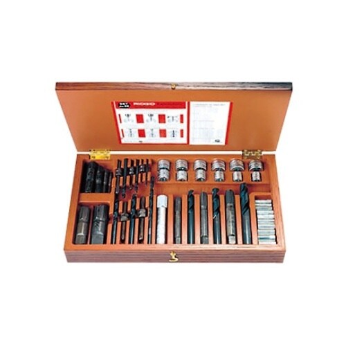 No.1ー8のスクリューエキストラクタを含み(No.1ー5エキストラクタにはターナット付属)、ドリルNo.1ー8、およびNo.36一本、ドリルガイドとブッシングの完全なセットが付きます。 |