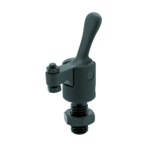クランプ時にカチッと音がして確実にクランプします。コンパクトで小物ワーク、小スペースでの使用に適しています。指先での操作にフィットするレバー形状です。アンクランプ位置でレバーが固定します。 |
