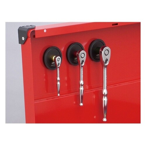 強力マグネットでキャビネット等に取り付け可能です。引き出し内で転がりやすいハンドル類を安定して収納できます。差込角部にボール溝があり、ハンドル類を確実に保持します。 |