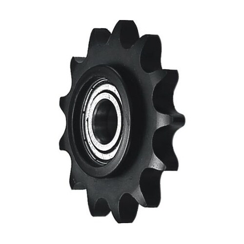 汎用エンプラ・ポリアミド樹脂6ナイロンを使用しているため軽量です。低騒音を重視したアイドラースプロケットです。アイドラー・ピン・タイトナーを組み合わせ、チェーンの伸びの調整に。 |