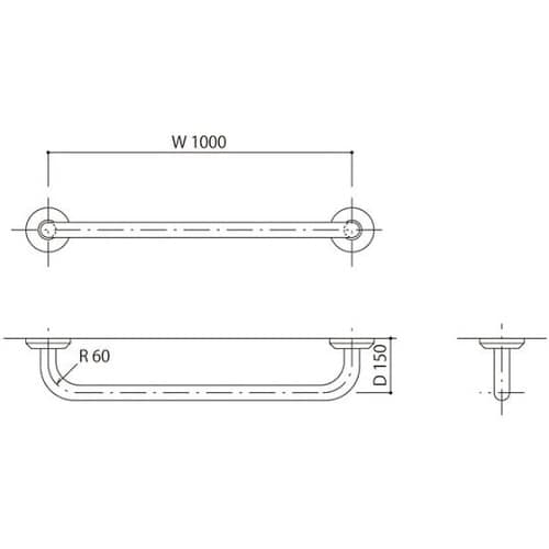 握りバー 化粧丸座80径 外径34mm バフ研磨仕上 SK−3470R−100150 SK−3470R−100150 1個