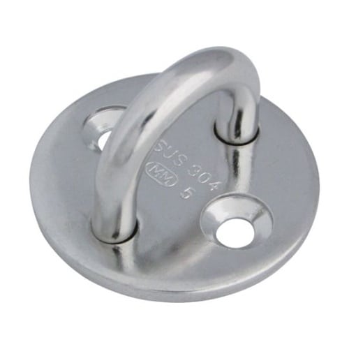 2ヵ所を止めるタイプです。プレート部分が円形です。壁面・床面・柱などに設置し、チェーン・ワイヤ・ロープの端末金具として。 |