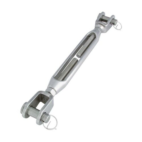 枠を回転させると、緩めたり、締めたりすることができます。リングを外すことにより、簡単に対象物に取り付けられます。ワイヤロープの張り具合の調節に。 |