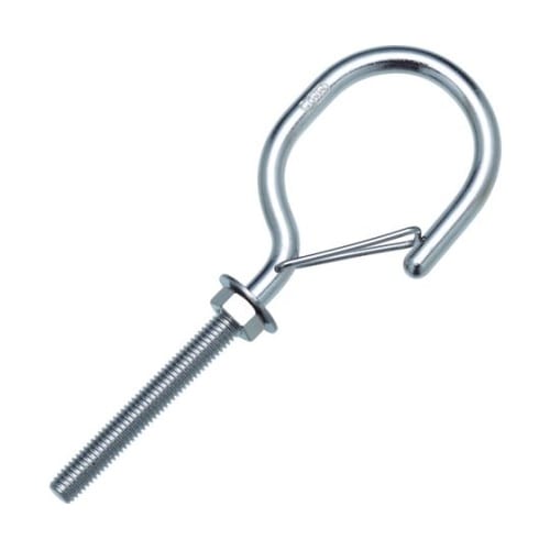 フック付なので、掛けたものが不用意に外れにくくなっています。防鳥ネット取り付けなどに。壁紙・床面・柱等に設置し、チェーン・ワイヤー・ロープの端末金具として。 |