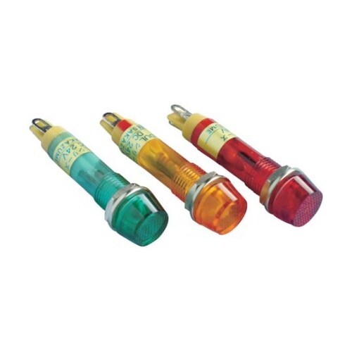 抵抗器内蔵の超高輝度LED表示灯です。防水・防滴タイプでIP65認定品です。通電表示や警告表示などに。 |