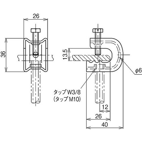 引っ張りに対して、確実な支持ができる様に、クボミ先構造のねじを使用しています。エコノミータイプのパイラック型吊り金具です吊りボルトは、垂直に吊り下げてください。すべり、落下の恐れがあります。 |