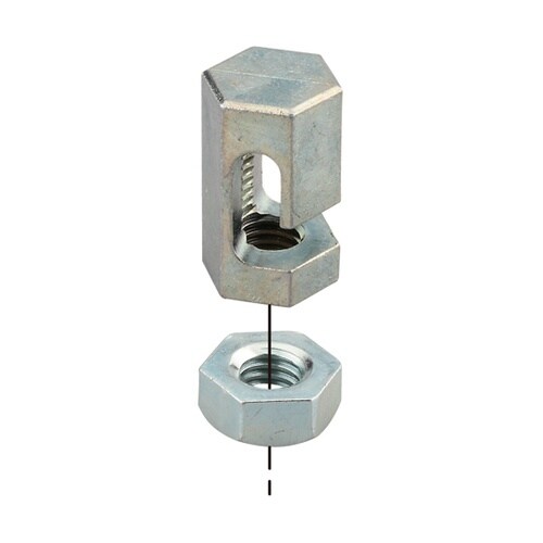 逆向きに使用してメッセンジャーワイヤーの支持や振れ止めを行うことができます。容易に仮止めできるので、取り付け後支持間隔に合わせて自由にスライドできます。 |