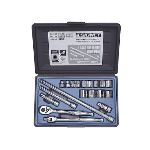ミラー仕上げのメッキが美しいスタンダードソケットセット。ボルト・ナットを傷めにくい面接触タイプ。6角タイプ。ブローモールドケース入り。 |