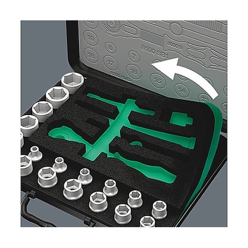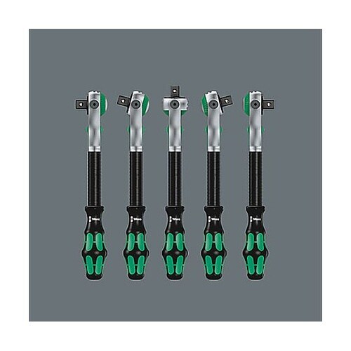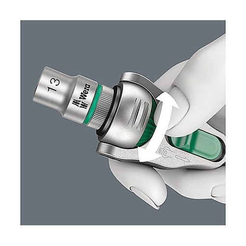 メタルケース付首振りと早回しスリーブは作業を楽にします。ラチェットハンドルは細かい歯により、回転角はわずか 5°です。 |
