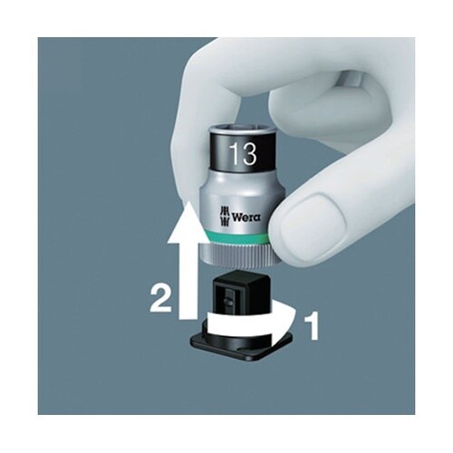 各サイズが色で分けられているため、サイズを簡単に選べます。ホールディングファンクション(HF)により、ボルトやナットを着磁機能なしで保持できます。クロムメッキ仕上げです。 |