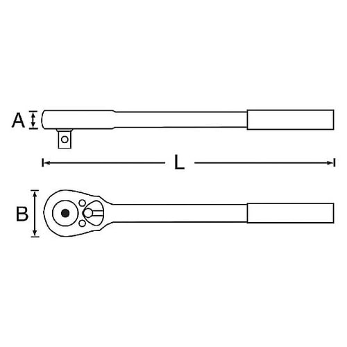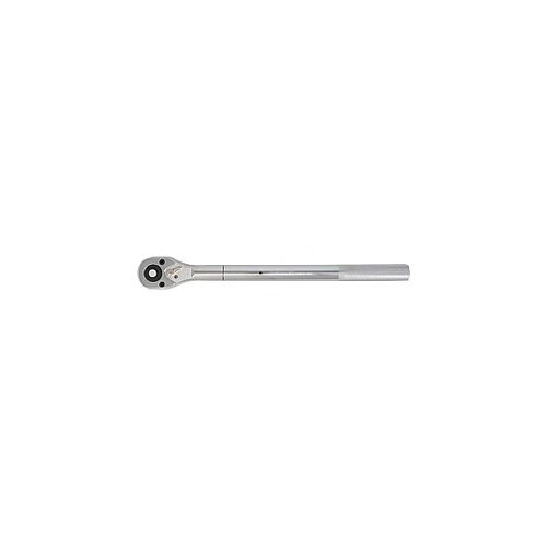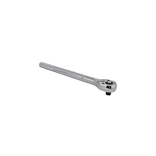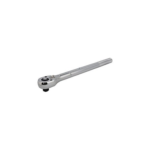 グリップに滑り止めのローレットを施した頑丈なラチェットハンドル。 |