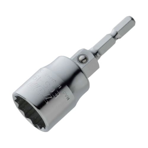 六角軸シャンクで電動ドリルにワンタッチで取り付け可能です。電動工具、手動兼用タイプです。13mmめがねレンチなどに接続し、手動工具として使用可能な便利工具です。 |