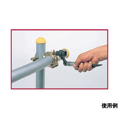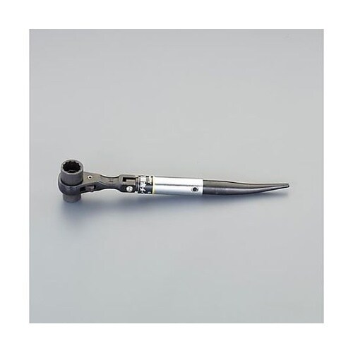 12ポイント左右切替式曲がりシノ付ハンドルがワンタッチで折れ曲りボルト・ナットの早回しができます。足場用クランプの組立、解体に適しています。 |