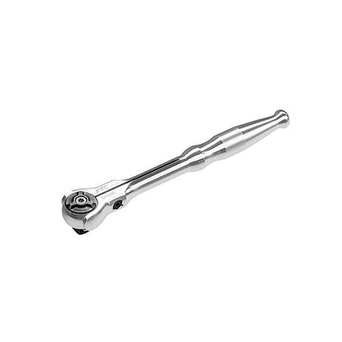 狭小箇所で高い作業性を発揮。ヘッドを中心にハンドル180°以上転回でき、ラチェットドライバのように使用することが可能。ハンドル部は樹脂ではなく金属を採用。 |