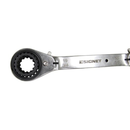 ヘックス、ダブルヘックス、ヘクスローブ、スクエア、スプライン、ラウンドヘックスネジの6種X8サイズに対応。メガネ部分の内部のみが15°まで傾くので、クリアランスを広く取って作業ができます。 |