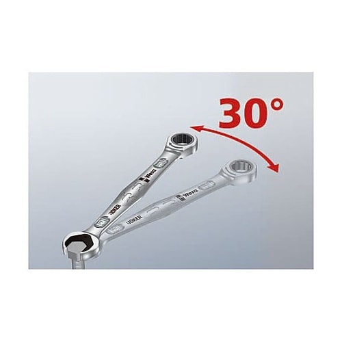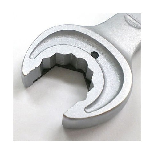 スパナ部表側に6角のプレート付でボルト抜け落ちのストッパーにもなります。6角プレート部はギザ付のため、ナットをしっかり固定し強いトルクをかけることができます。 |