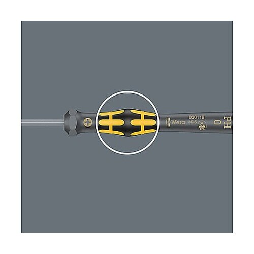 先端ホールド機能なし静電対策仕様ハンドル上部にある精密ゾーンで、作業中の微調整を簡単に行えます。ハンドル後部にある早回しキャップ、その下にある早回しゾーンにより、スピーディにドライバーを回せます。 |