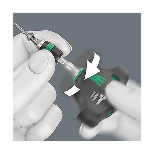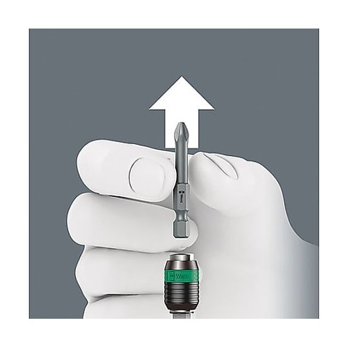正逆切替レバー付ビットを交換する時、スリーブを前に押すだけで、ビットを簡単に取り外すことができます。細かいギアを備えた一体型ラチェットにより、高速で安全な作業ができます。 |
