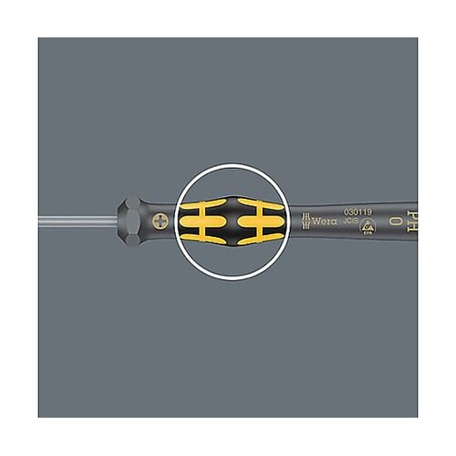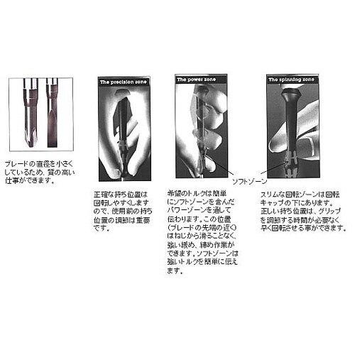 静電対策仕様。ESDの表面電気抵抗は≧10^9 ohm以下です。ブラックポイント刃先仕上げによりネジにぴったりフィットし、先端の耐食性を高めます。 |