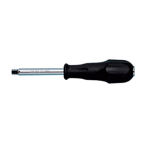 エルゴノミックデザインに基づいた握り易い樹脂グリップ採用。グリップエンドに1/4”SQの差し込み穴がついており、スライドTバー等と組み合わせることも可能。 |