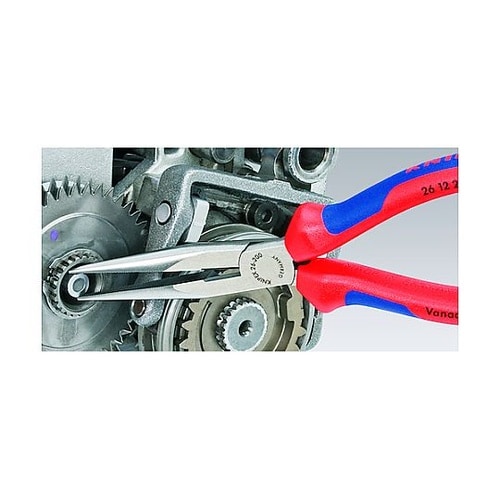 ヘッドは頑丈で、しかも精密に作られています。ロングタイプで、先端形状は半丸型です。つかみ面には滑り止めの横スジが入っています。入念な焼入れ処理が施されたカッター部の硬度は約HRC61です。 |