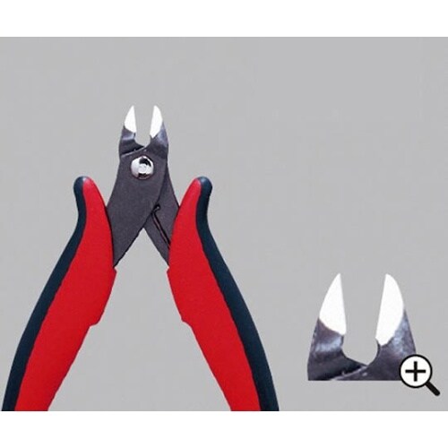 精密部品のリード線を水平にカット。ICチップを垂直にカット。※刃こぼれの原因となりますので、硬線は切らないでください。 |