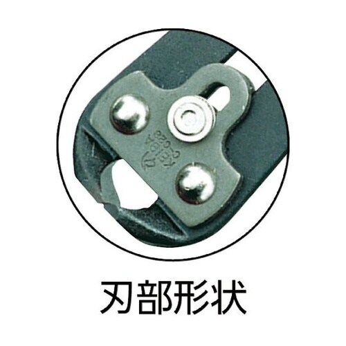 刃は神戸製鋼所製オリジナル高級鋼材「マルトロイ1」を鍛えた鍛造刃です。力が伝わりやすい喰切タイプです。ピアノ線等の線材を切る用途に。 |