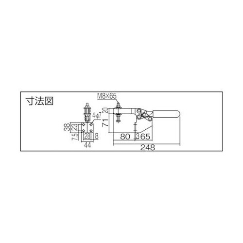 全長(mm):266 | 締圧力(kN):2.8 | 付属ボルト径:M8×65 | クランプアーム移動角度(°):80 | ハンドル操作角度(°):8…