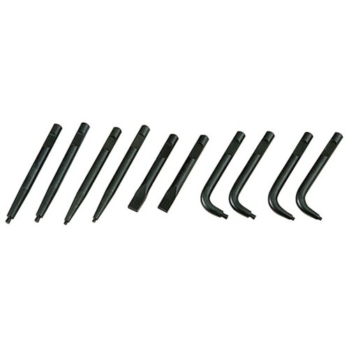 スナップリングプライヤ先端クロー10本組セットです。クローは特殊工具鋼で独自の熱処理により強く、逆テーパの先端形状で、作業中スナップリングを落としにくく、狭い場所での作業にも適しています。