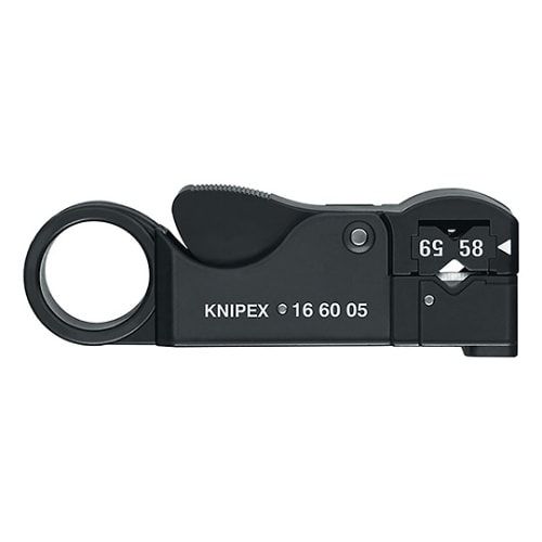 同軸ケーブルのストリッピング(皮むき)作業に(RG58、RG59、RG62)。一つの操作で3層(シース・外部導体・絶縁体)のストリッピング(皮むき)が可能です。 |