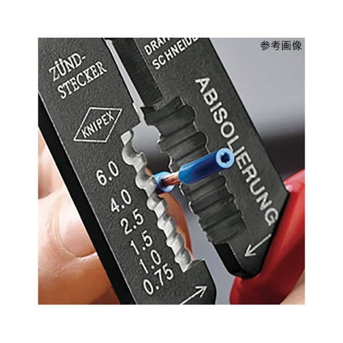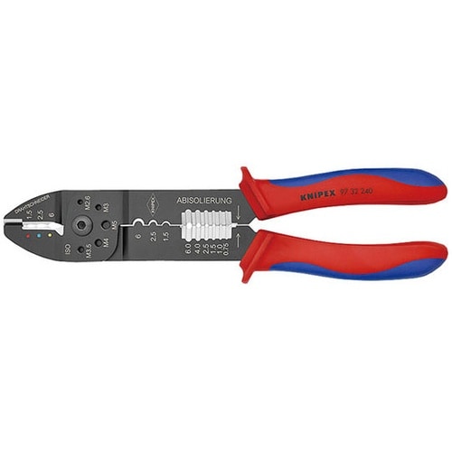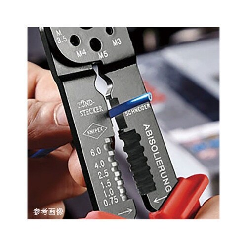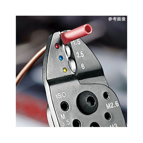ケーブルの切断・ワイヤーのストリッピング(皮むき)・絶縁端子の圧着が行えます。M2.6・3・3.5・4・5の銅および真鍮製のねじを切断することができる穴が空いています。 |
