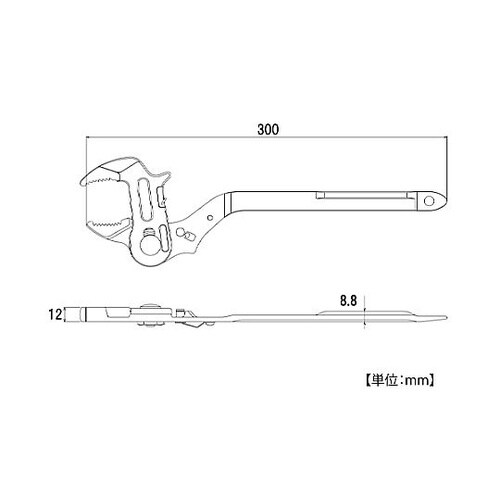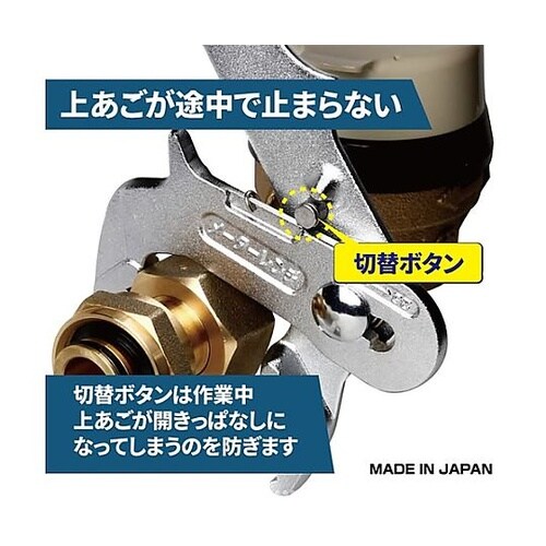 1丁で2サイズのメーターユニオンナットに適応します。細かい歯形で狭いボックス内でもラチェット駆動ができます。切替ボタンは作業中上あごが開きっぱなしになってしまうのを防げます。 |