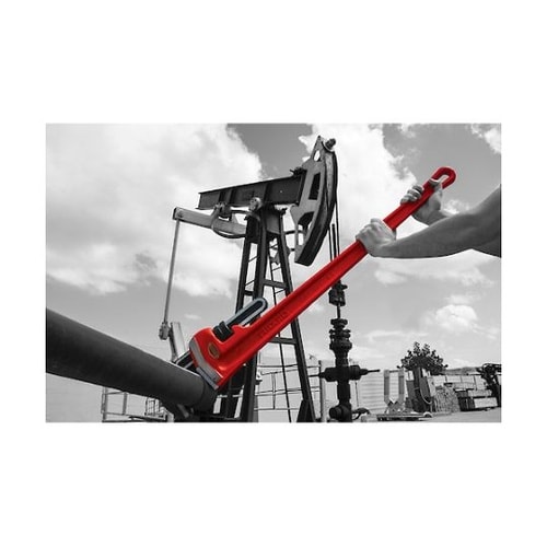強度・作業性・能力など、すべての面でプロを満足させるパイプレンチです。能力はすべて継手サイズです。頑丈な鋳鉄ハウジング、ハンドル、フックジョー、ヒールジョーで構成された丈夫で使いやすいレンチです。 |