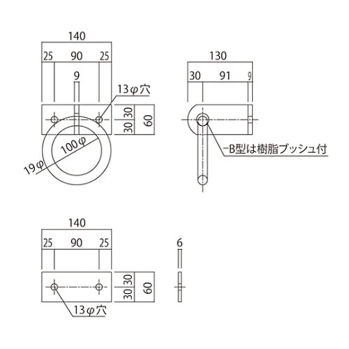 吊環 (丸環) 後付用・樹脂ブッシュ付 SFB−13S−B SFB−13S−B 1個